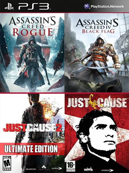 4 JUEGOS EN 1 Assassins Creed Black Flag Mas Assassins Creed Rogue Mas Just Cause Mas Just Cause 2 Ultimate Edition PS3