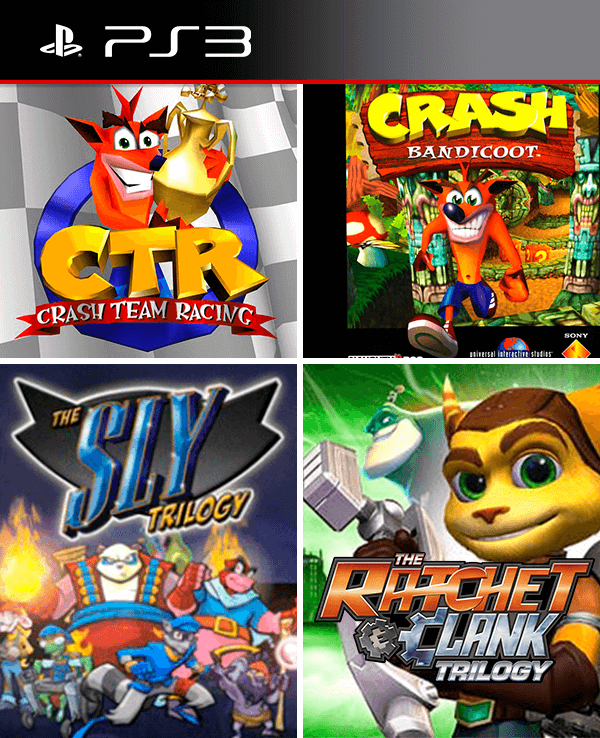 8 juegos en 1 The Ratchet & Clank Trilogy + Crash Bandicoot + CTR Crash Team Racing + The Sly Trilogy PS3
